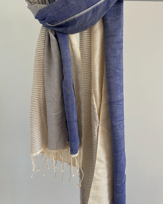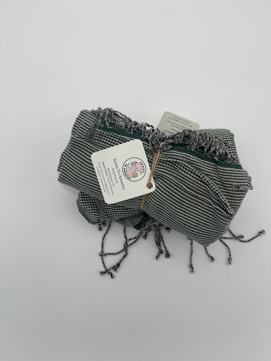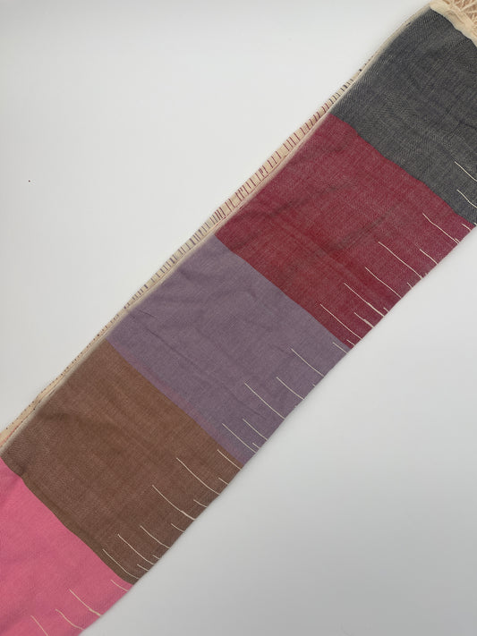 Maroon Red Handwoven Scarf with Stripes & Checkered Pattern